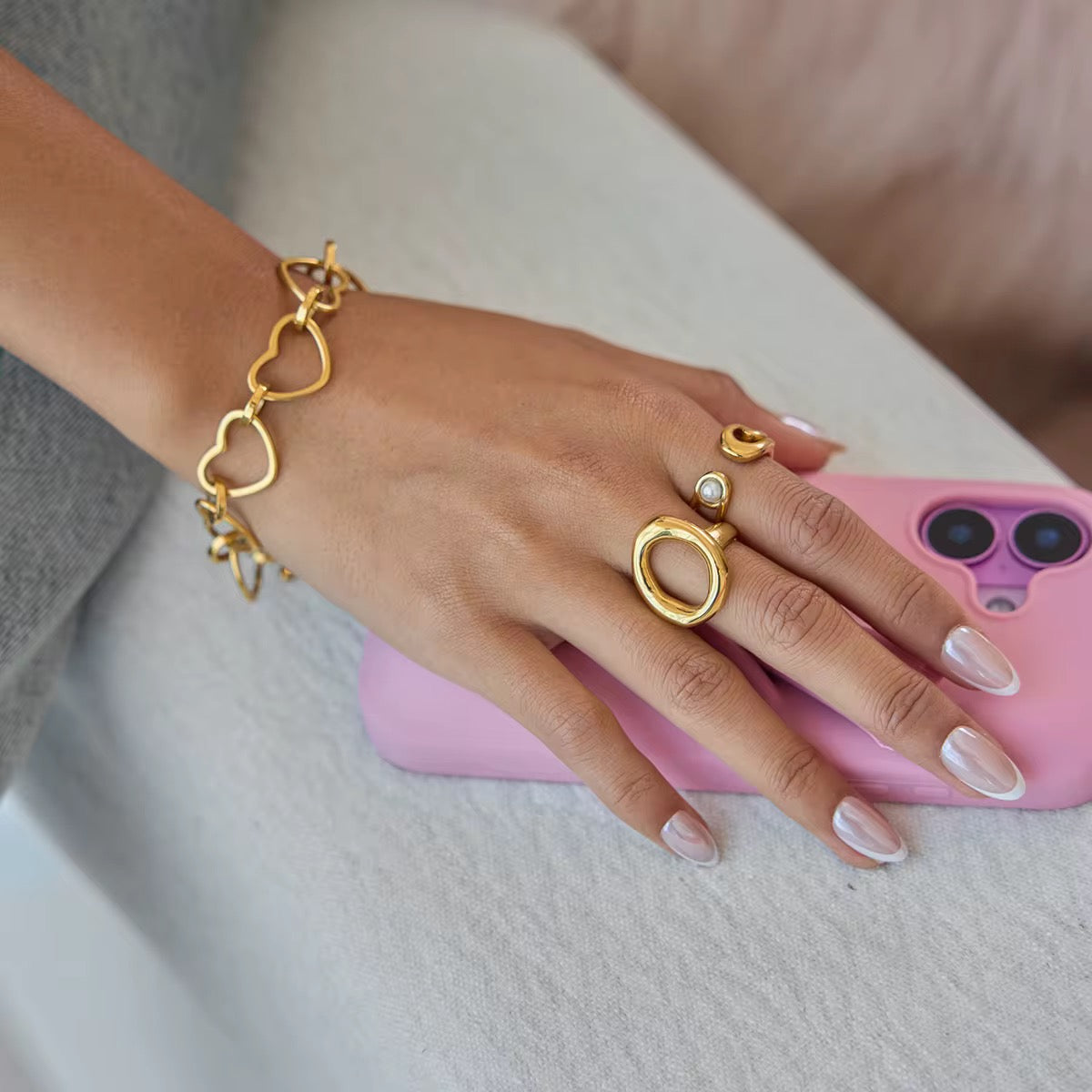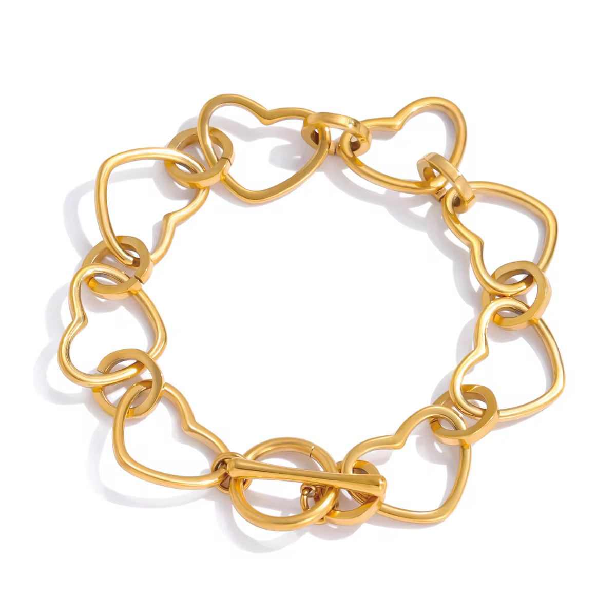Heart Marine Spring Ring Clasp Link Bracelet Set