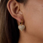 Romantic and full of brightness. Feature a hanging heart pavé of zircona that captures light from all angles, available in gold or silver version to suit each style.