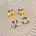 Give a modern twist to your look with these sculptural double hoop earrings. They shine with elegance and presence, perfect to stand out on any occasion.