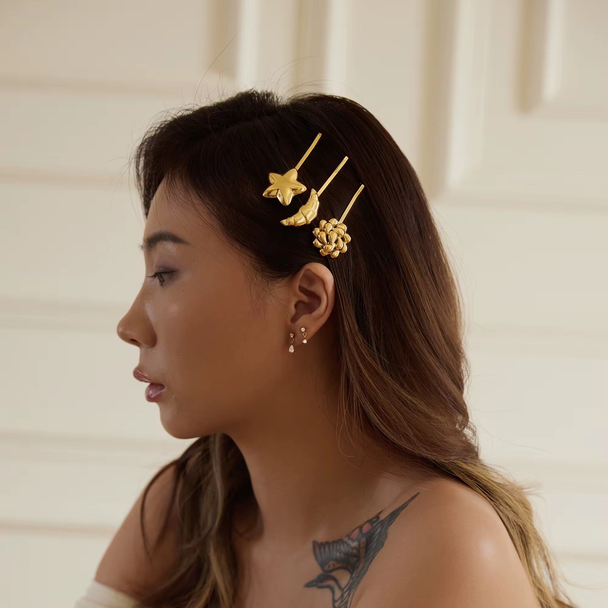 Transform your everyday hairstyle with our Croissant Metal Hair Pin. Made of high-quality material, this hair pin is durable and designed to keep your hair in place. With its sleek and elegant design, it adds a touch of sophistication to any look. Perfect for a polished and put-together appearance.