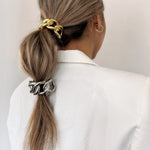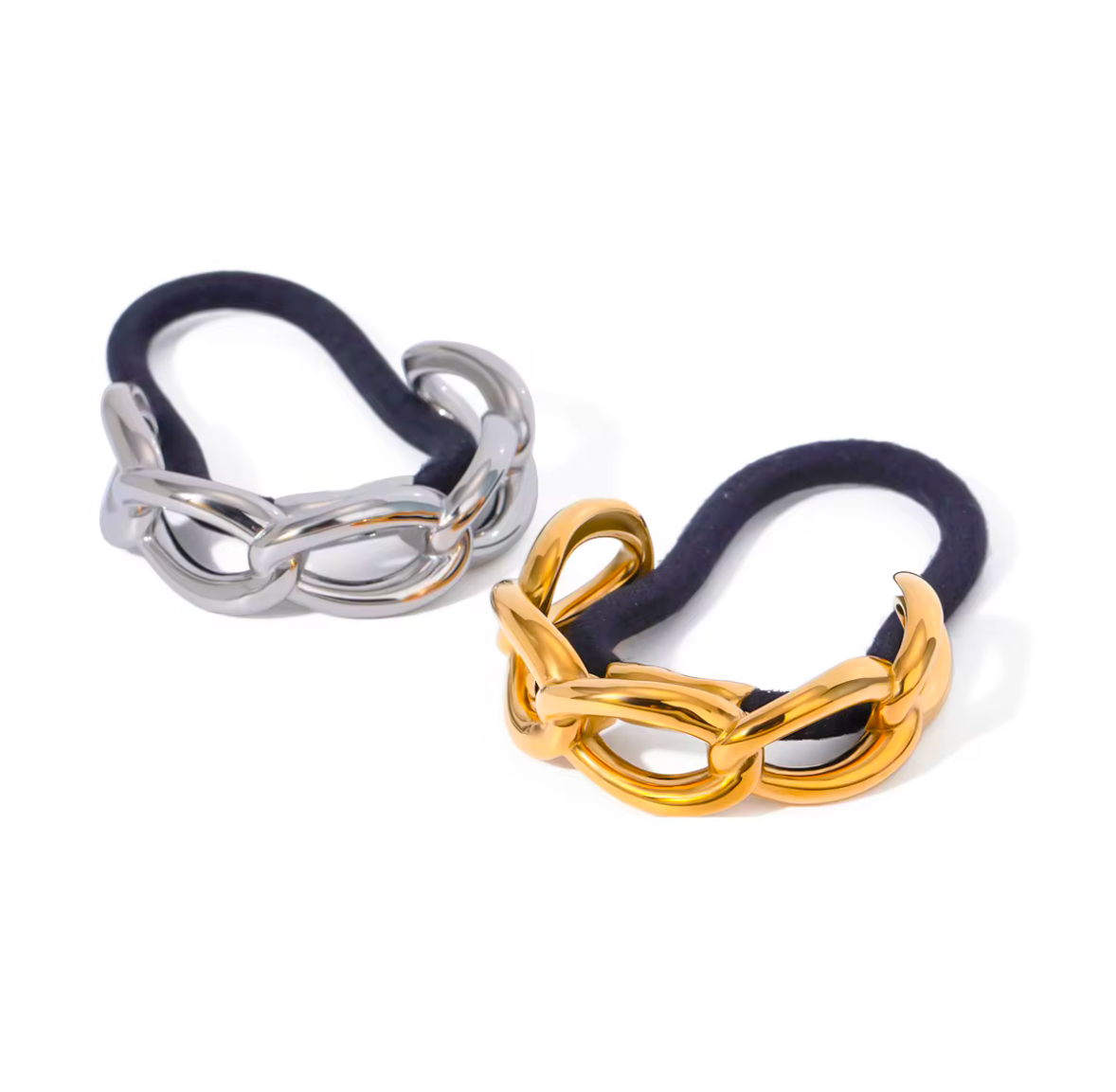 Efficiently and stylishly tie your hair with our Link Metal hair tie. Its unique design securely holds hair without pulling or breaking, making it perfect for all-day wear. Say goodbye to uncomfortable hair ties and hello to a secure and stylish option.