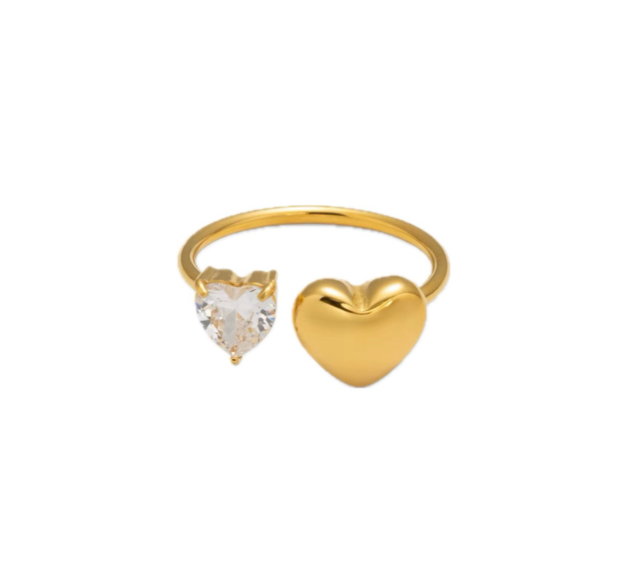 Elevate your style with our Dual Heart Open Ring. This classic and romantic piece is sure to make a statement. Let our ring showcase your love and add a touch of elegance to any outfit. Perfect for any occasion.