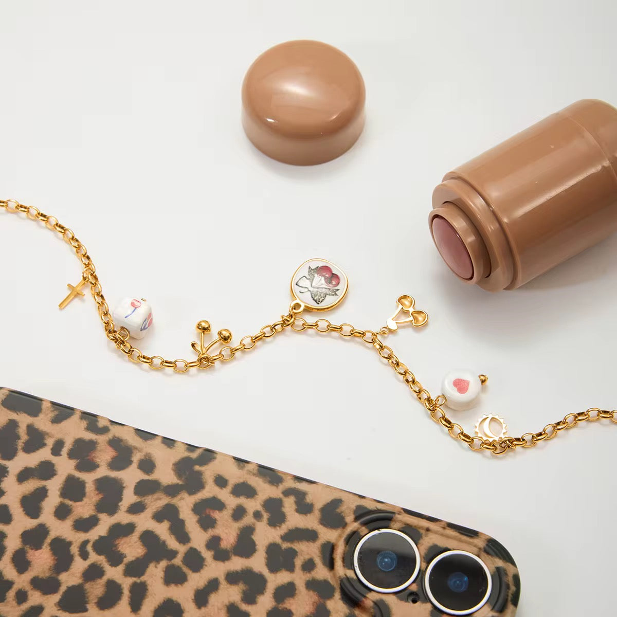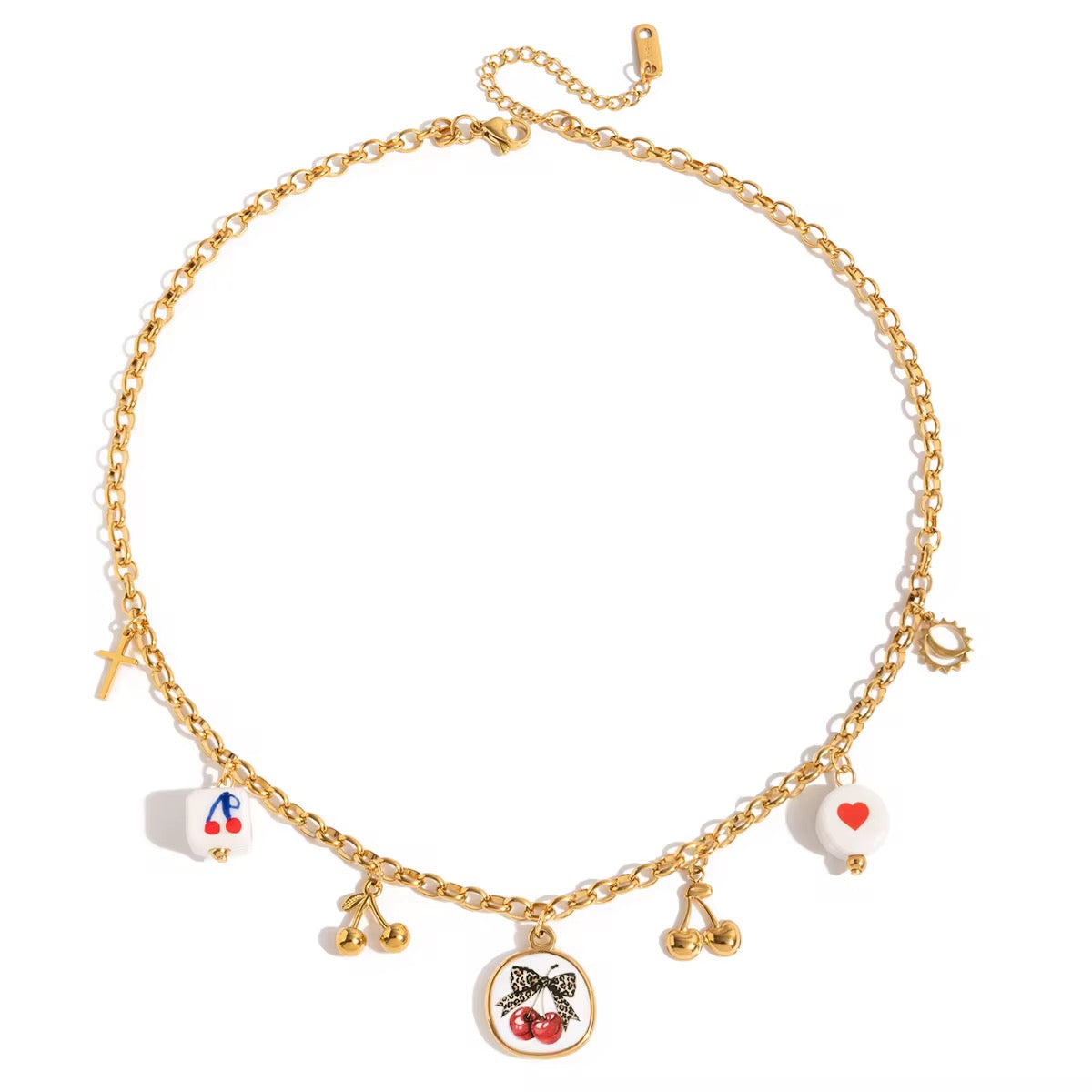 Fun, romantic and full of personality. Combines golden cherry charms, hand-painted details and symbols full of meaning, creating a vibrant piece that expresses joy and charm in every look.