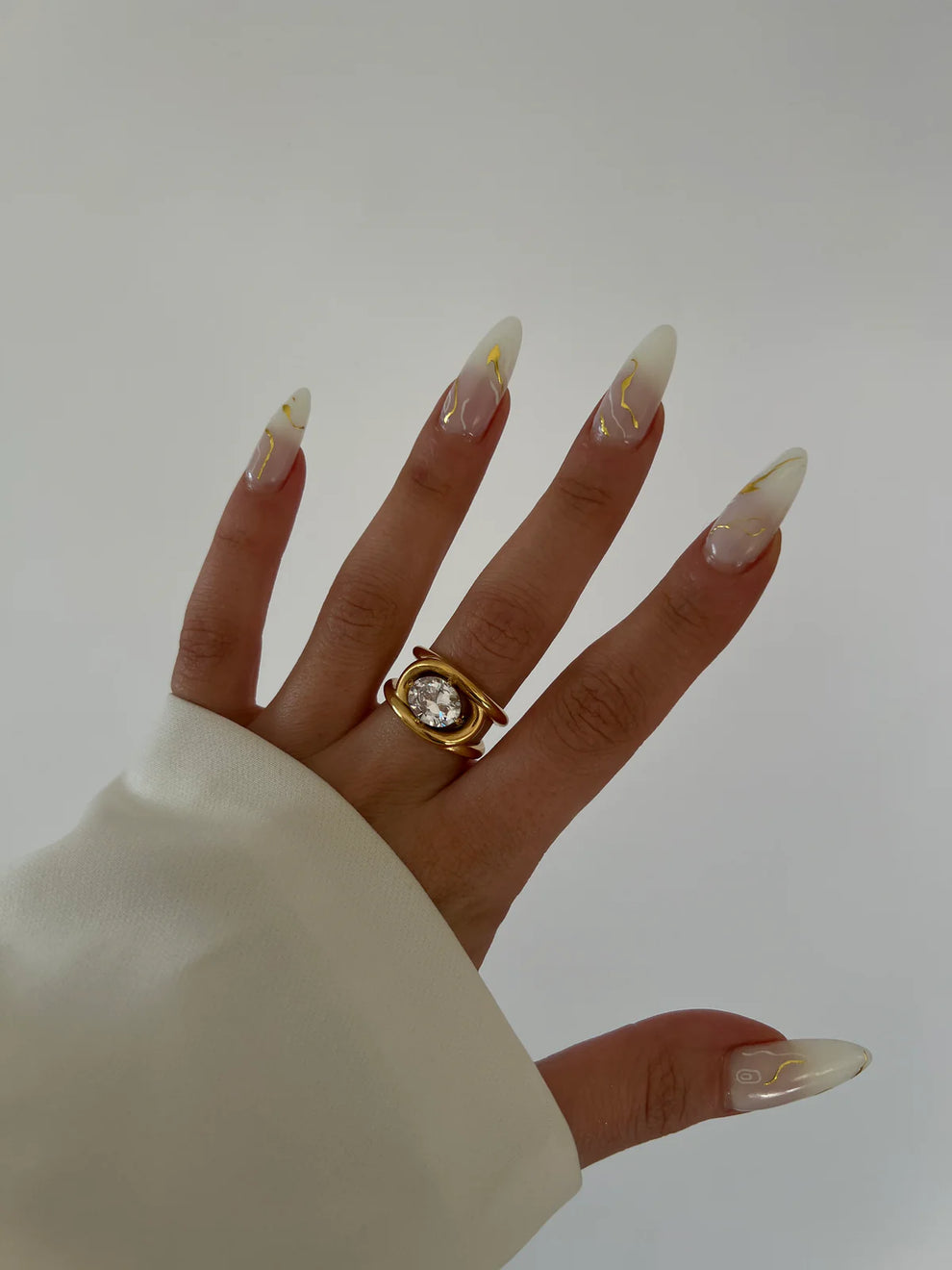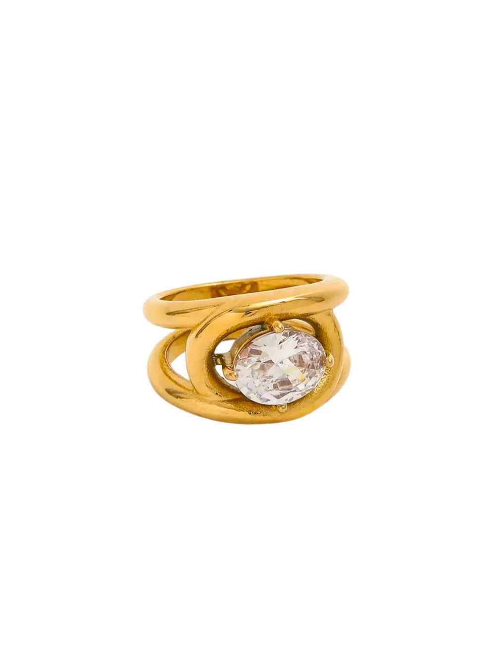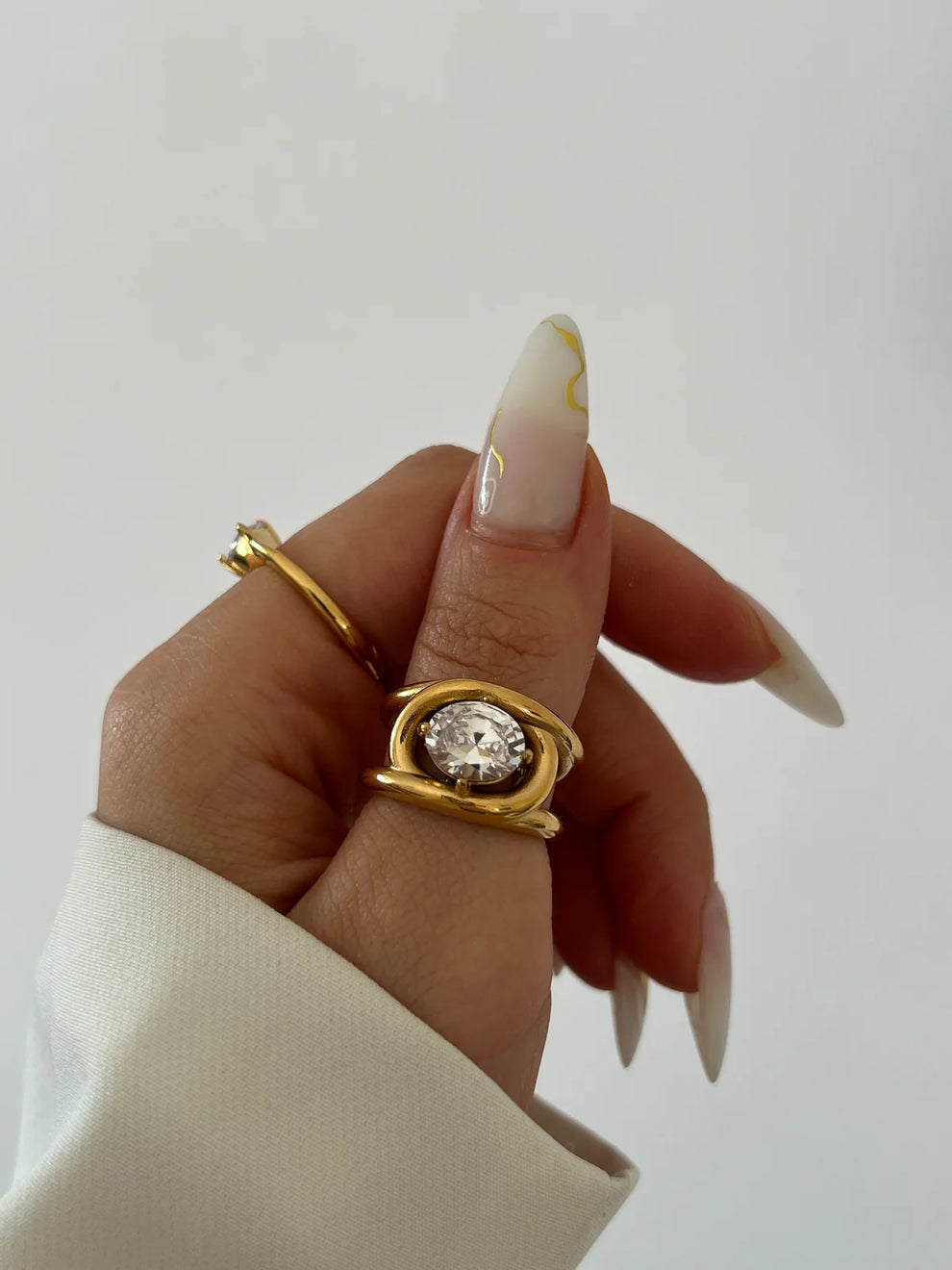 Add a touch of glamour to your style with this striking intertwined design ring. Its unique and sophisticated structure combines modernity and elegance, making this ring a perfect accessory to stand out on any occasion.