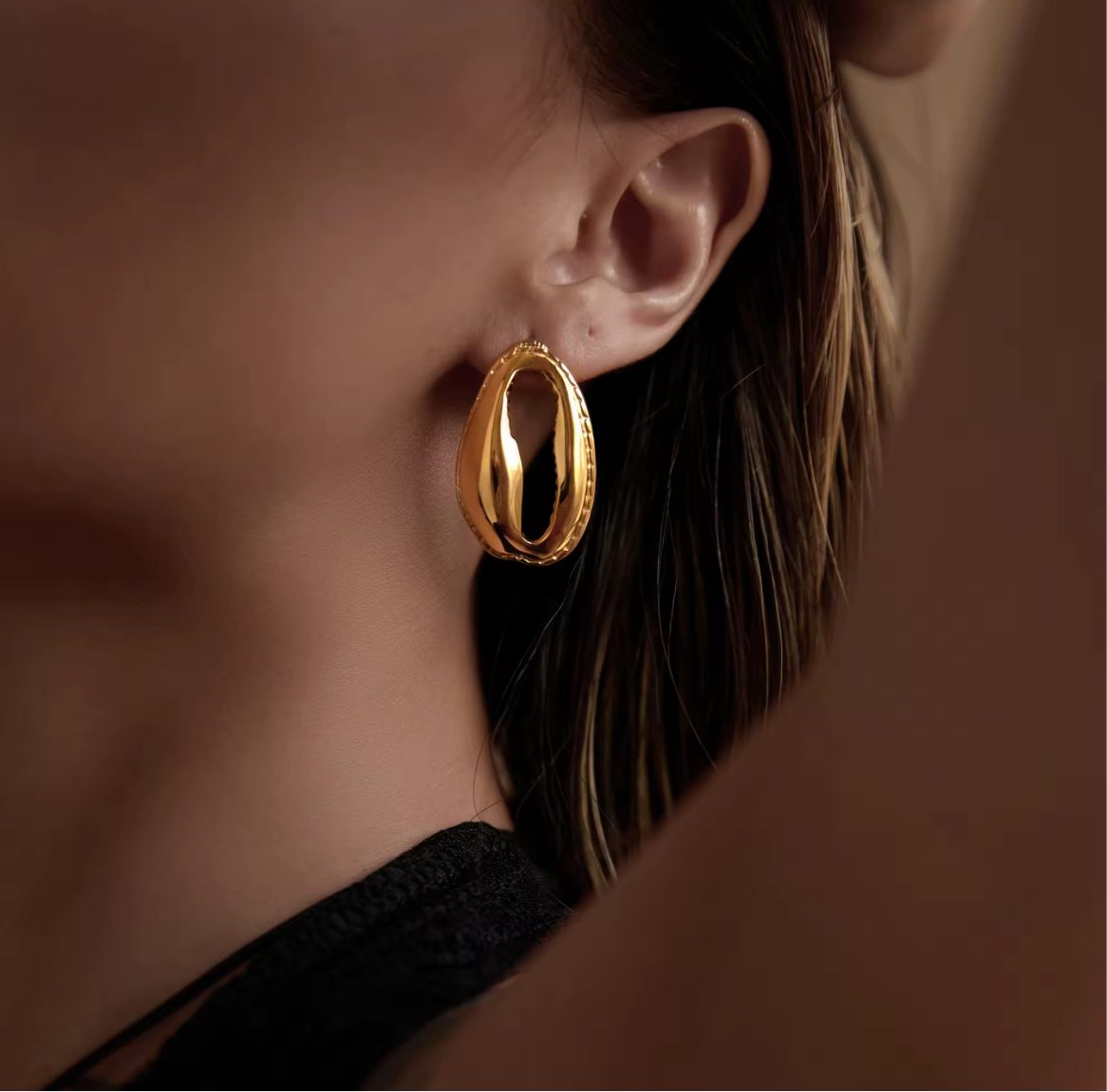 Exotic, radiant and with a marine spirit. Evokes the shape of cowrie shells, a symbol of protection and abundance, reinterpreted in a contemporary design that brings a unique shine to the face.