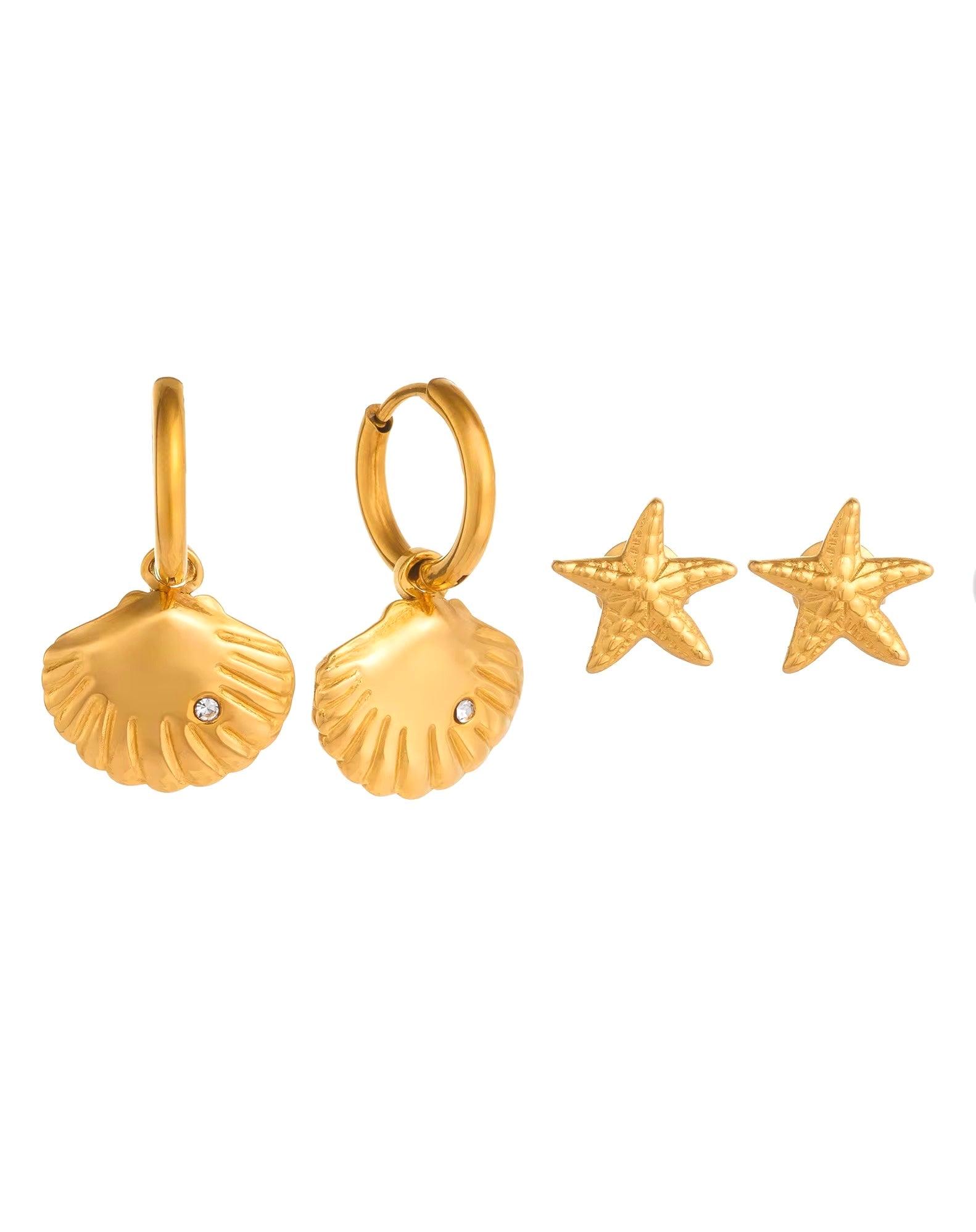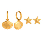 A tribute to the charm of the sea. Earrings with seashell and zirconia charms, & textured starfish. Perfect for combining, mixing and creating unique styles every day.