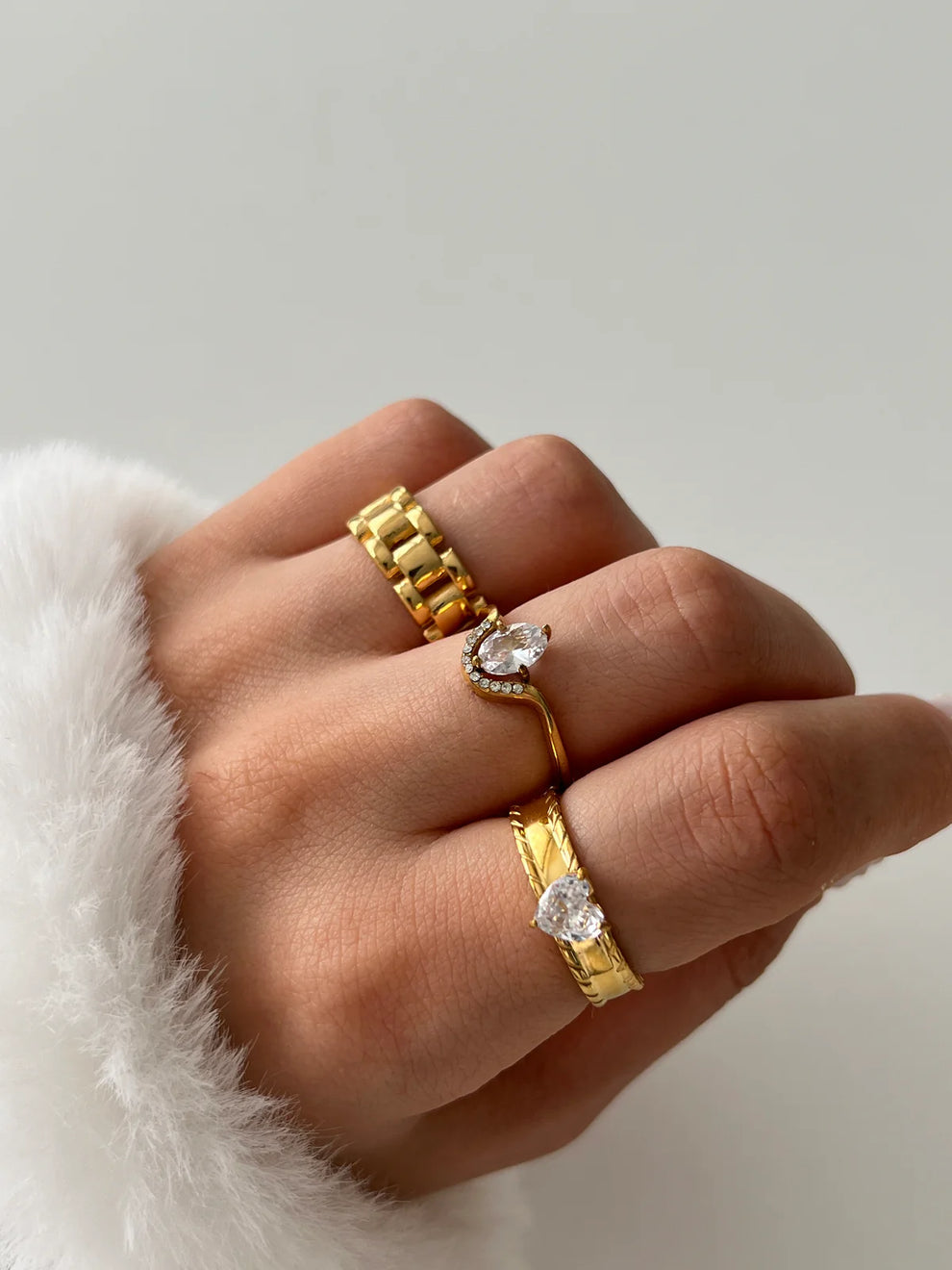 The Heart Sparkling Ring combines elegance and delicacy in a unique piece. Its golden band, adorned with a spiral textured finish, is crowned by a heart-shaped Stone that adds shine and romanticism.