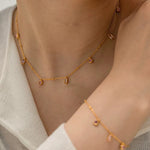 Our jewelry is designed to be water-resistant, so you don’t have to worry about taking it off when you’re near water. However, we recommend limiting prolonged exposure to water to keep your jewelry and accessories looking its best.