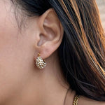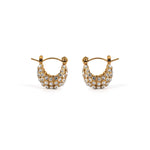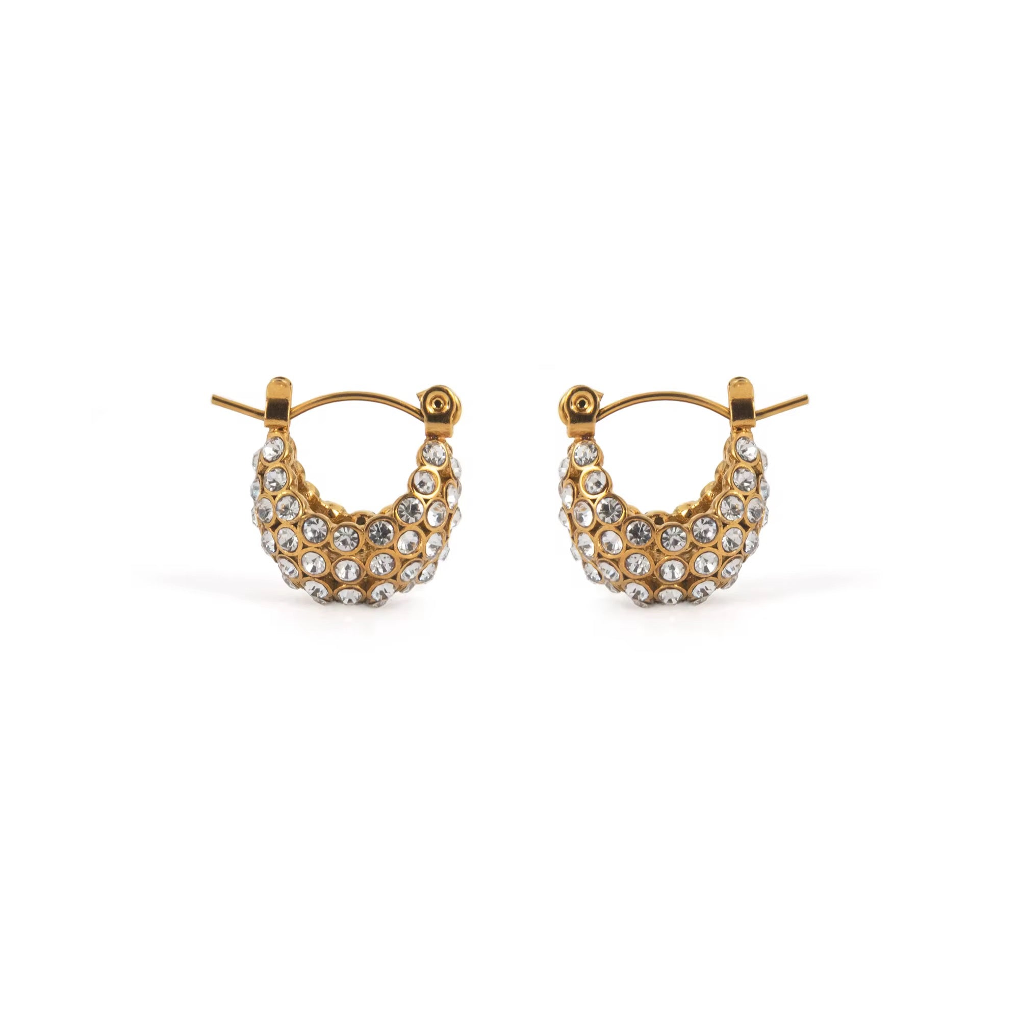 Radiant brightness at every angle. Captures the magic of the night with a voluminous hoop design, covered with zircons that evoke a starry sky. A sophisticated and dazzling piece for those looking to stand out.